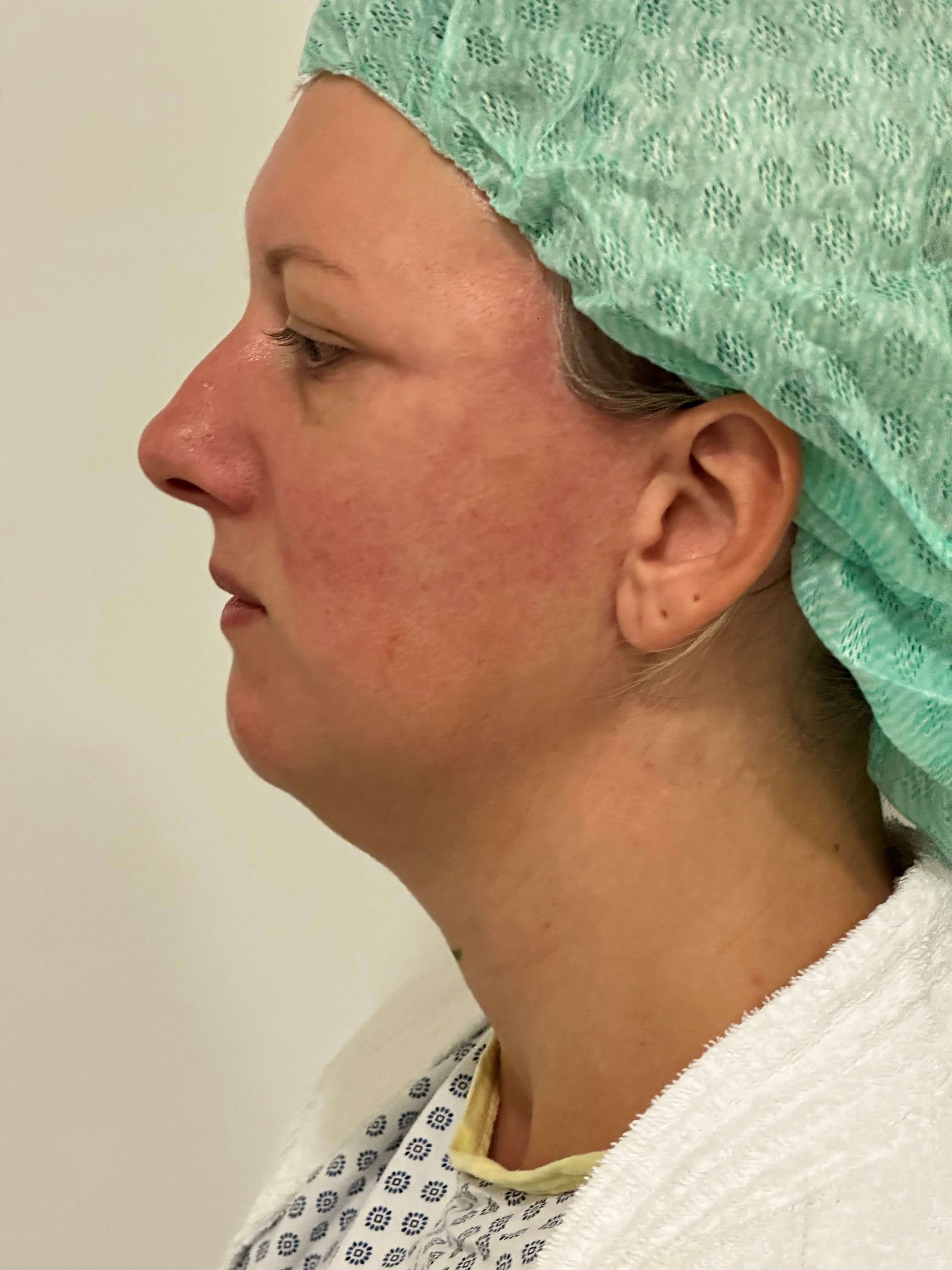 Neck lift in a 41-year-old female patient with a heavy neck (double chin). Deep plane facelift and neck lift in a reconstructive case of synkinesis (mass movements) and muscle spasticity after defect healing of facial paralysis (medical indication).